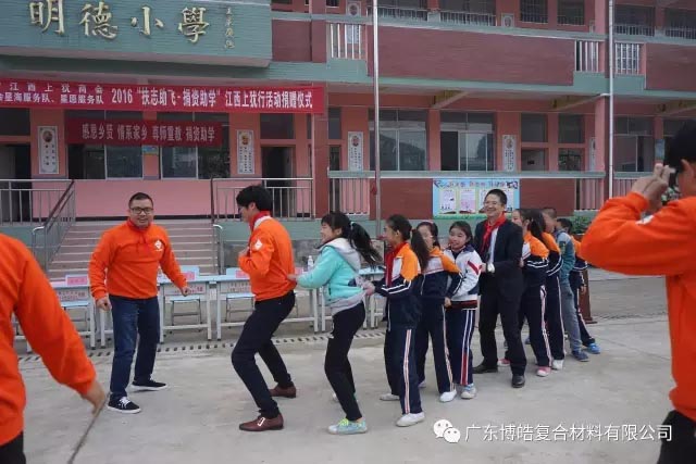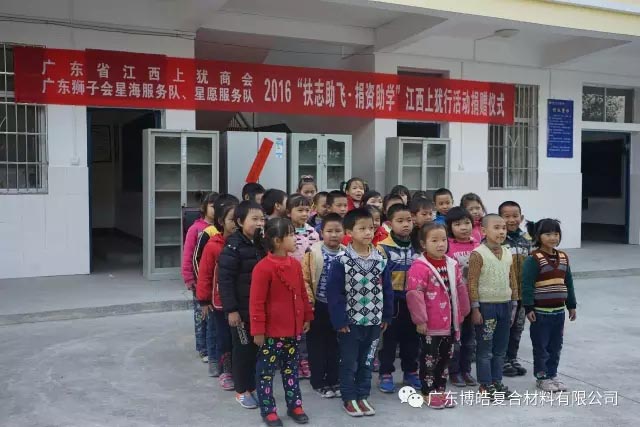 2016年12月8日-9日,有著廣東江西上猶商會會長、廣東博皓復合材料有限公司董事長雙重身份的賴厚平先生帶領商會成員等一行人來到江西上猶縣開展為期二天的“扶志助飛、捐資助學”捐資助學活動,為偏遠貧困山區小學的師生們送去助學金和課桌、學習用品、電腦設備等一大批教育教學物資,用行動助力地方教育工作。
